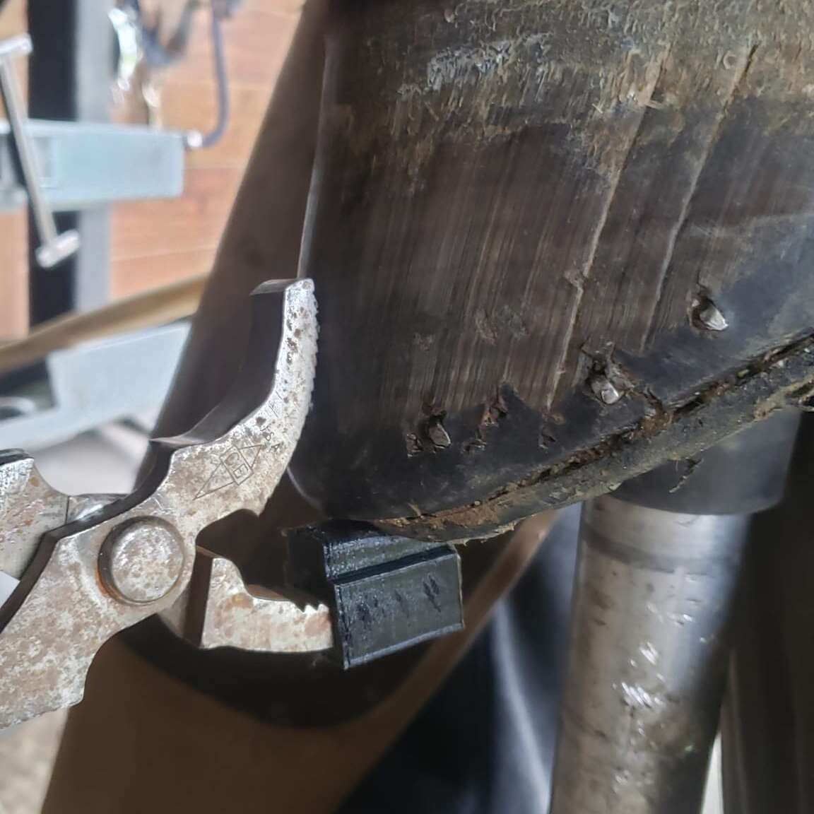 Pour la pose des Fer’air, il est nécessaire d’utiliser un embout pour pince à river afin de tenir la tête du clou pour ne pas qu’elle descende lors du rivetage. Cet embout est aussi adapté à la pose d’autres marques de fers plastique.